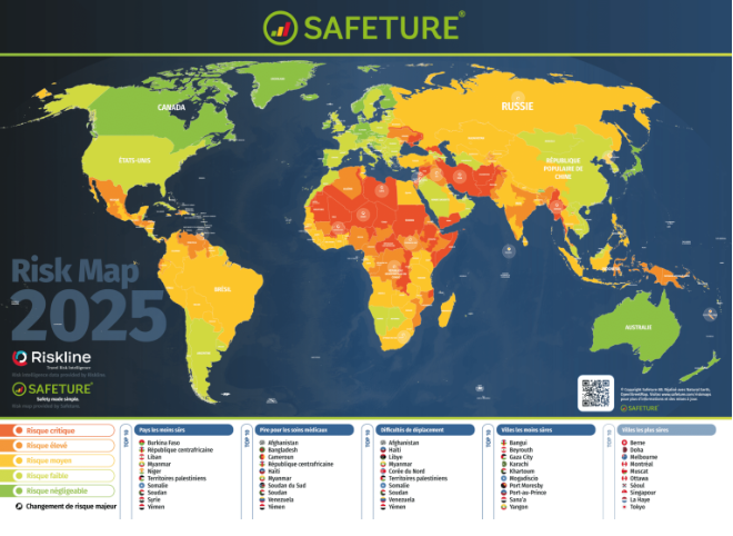 كشفت منصة "Safeture" السويدية المتخصصة في تحليل المخاطر وإدارة البيانات العالمية، في خريطة المخاطر لعام 2025، أن الحدود الجنوبية والشرقية للجزائر تشكل مناطق عالية الخطورة وغير آمنة للسفر، بينما صنفت المغرب ضمن الدول الأفريقية القليلة ذات المخاطر المنخفضة.