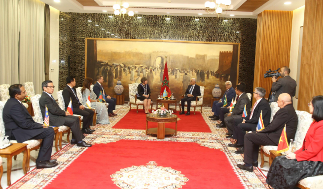وخلال هذا اللقاء، تناول الجانبان عمق العلاقات التاريخية التي تجمع المملكة المغربية بدول آسيا والمحيط الهادي، سواء على المستوى الثنائي أو متعدد الأطراف، مؤكدين على القيم المشتركة التي تقوم على التقارب الثقافي وتبادل المصالح، وعلى حرص المغرب على تعزيز شراكاته الاستراتيجية مع هذه الدول في مختلف المجالات.